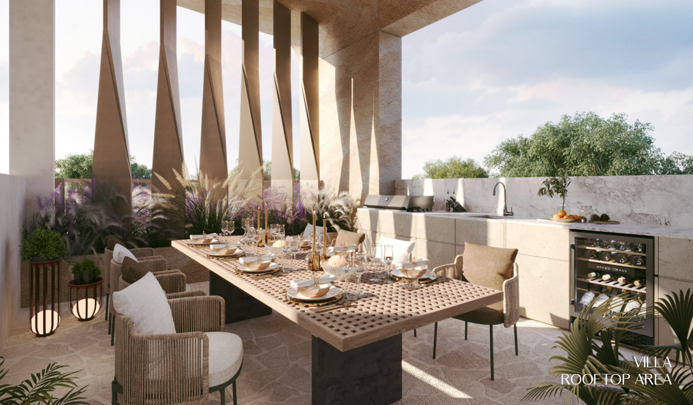 Knightsbridge interiors are masterfully crafted from natural materials, seamlessly integrating with the surrounding lush greenery & tranquil water elements to evoke an unparalleled sense of relaxation and serenity. Featuring premium biodegradable materials and exquisite design, these interiors offer an exclusive living experience that harmonises effortlessly with the surrounding natural environment.